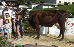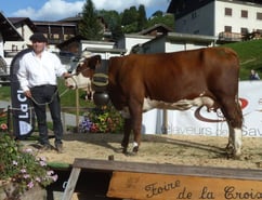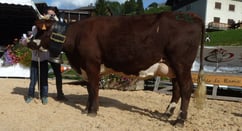 Elite (Oclin x Basile x Ukren), la championne adulte, appartenant au Gaec la Vallée Blanche (Famille Clavel) illustre toutes les qualités de longévité de la race abondance. Cette vache, âgée