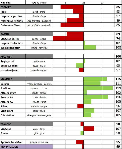 Les mamelles sont très bonnes (114), excellente dans leur équilibre (119) et la hauteur d'attache arrière (116). Elles présentent également peu de volume (110).